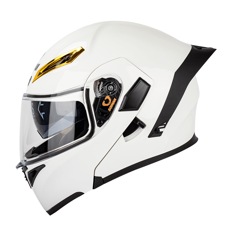 Модуляр Soman SM955-S выполнен из термопласта и полностью соответствует требованиям европейского и американского стандартов безопасности. Подъёмная «челюсть» шлема надёжно фиксируется в открытом состоянии, быстросъёмный визор подготовлен под установку пинлока, доступного в качестве опции. В стандартное оснащение шлема входит и выдвижная солнцезащитная шторка.