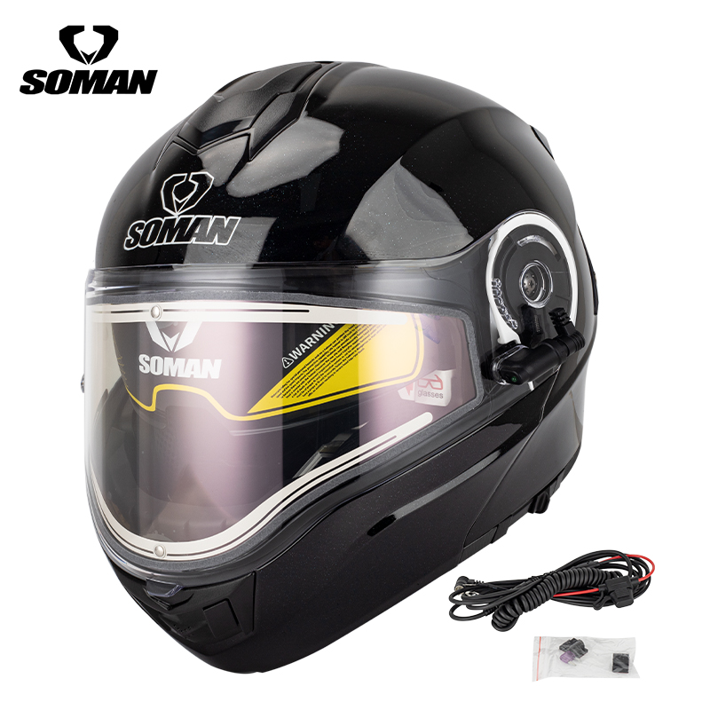 Этот комплект обеспечит комфортные и безопасные поездки мотоциклистам и скутеристам, не закрывающим сезона до последнего момента. Кроме того, флип-ап Soman SM965 с подогреваемым визором по достоинству оценят квадроциклисты и снегоходчики — ведь такой формат шлема наиболее удобен для зимних покатушек.