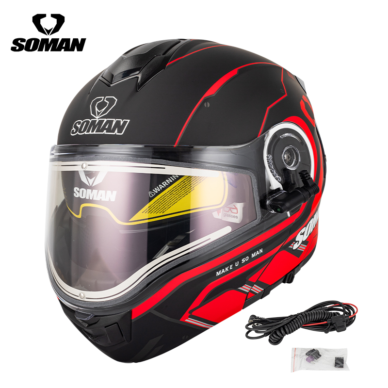 Этот комплект обеспечит комфортные и безопасные поездки мотоциклистам и скутеристам, не закрывающим сезона до последнего момента. Кроме того, флип-ап Soman SM965 с подогреваемым визором по достоинству оценят квадроциклисты и снегоходчики — ведь такой формат шлема наиболее удобен для зимних покатушек.